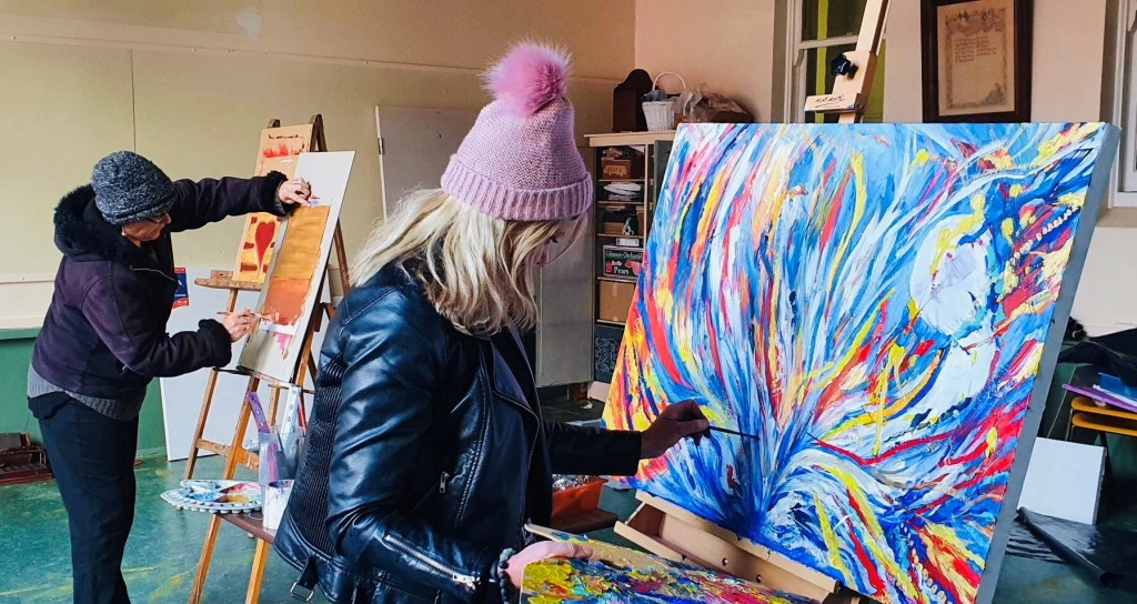 The Studio continues to be a space of connection, relationship, mutual listening and evolvement. When we could not gather in groups or outside, chalk drawing appeared in the car park where neighbours would walk beside, a bare wooden cross among the gum trees became a place for anyone to leave a message, a prayer, a symbol of hope and we painted ‘au plein air’.
